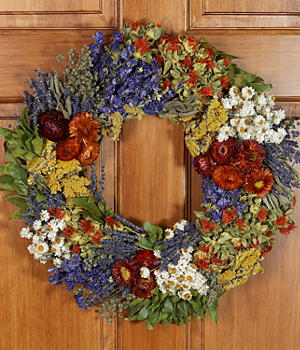 - This wreath is made from fresh and preserved materials